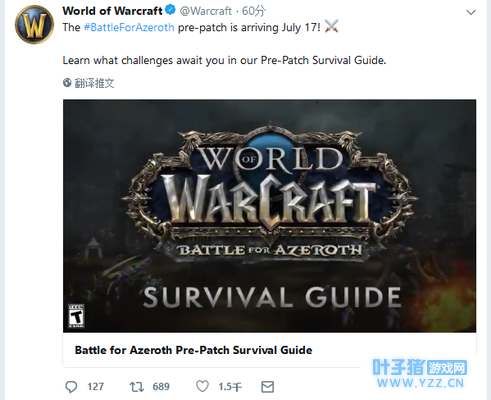 今早官推公布,美服与7月17日争霸艾泽拉斯前夕版本上线。 按照时间推断欧服为7月18日,而国服为7月19日。(具体时间等待国服官方公告) [编辑:叶子猪小秘书]