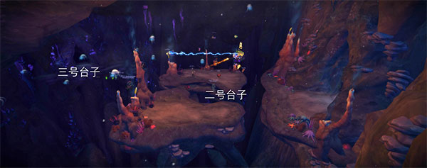 整个BOSS的战斗场地一共有三个台子,每个台子上都有两条河豚