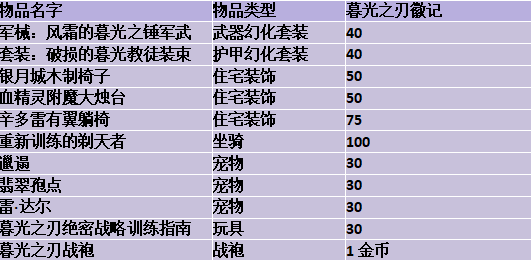 前往暮光高地击退暮光之刃教派的威胁,通过破坏仪式并击败遍布高地的稀有敌人,阻止其召唤更多势力。 该可重复事件向10级及以上的角色开放,你还将承担世界任务,并在完成任务后领取丰厚奖励。 联盟玩家将在暴风城与魔导师乌布里克会面并开启旅程,部落玩家则需在奥格瑞玛向大法师罗曼斯报到。 密教的渗透 加入魔导师乌布里克和大法师罗曼斯的行列,共同遏制日益猖獗的暮光之刃教派。 你将通过一段引导任务线开启征程。战团首次完成后将获得暮光之刃战袍,并解锁“并非教徒”头衔。 世界任务与稀有敌人 完成引导任务线后,你可以返回并参与两个额外的周常任务“干扰召唤”与“暮光黎明”,以及暮光高地的世界任务。在继续破坏暮光之刃教派仪式的过程中,记得消灭那些稀有敌人。 你将获得“暮光之刃徽记”,可用于在暮光高地的晋升营地处向商人兑换物品。 努力就有回报 你将能够获得两项成就: 午夜前的两分钟- 在“至暗之夜”前夕事件中,在暮光高地击败暮光之刃召唤的每一名首领。 奖励:圣光锻铸机甲(坐骑),暮光之棘(头衔) 密教徒特训- 在暮光晋升营地赢得暮光之刃战略游戏。 访问铸甲师卡里诺万可购买物品等级121(升级:勇士 1/8)的装备,访问唯物的欧菲尼尔可购买多种外观奖励,包括宠物、坐骑、玩具、住宅装饰以及幻化套装。 商人出售:铸甲师卡里诺万 布甲护甲套装 皮甲护甲套装 锁甲护甲套装 板甲护甲套装 商人出售:唯物的欧菲尼尔 坐骑 重新训练的剃天者(坐骑) 宠物 邋遢(宠物) 雷·达尔(宠物) 翡翠孢点(宠物) 住宅装饰及外观 套装:破损的暮光教徒装束 (头部、肩部、胸部) 辛多雷有翼躺椅 (住宅装饰) 血精灵附魔大烛台 (住宅装饰) 银月城木制椅子 (住宅装饰) *暮光之刃战袍必须完成“剪除邪教”且背包、银行或幻化收藏中没有暮光之刃战袍。 在“暮光晋升”前夕事件期间推出的住宅装饰物品,将在活动结束、“至暗之夜”正式上线后,于银月城的德瑟琳处开放购买。活动结束后,所有剩余的暮光之刃徽记将被转换为共鸣水晶。活动将于1月29日开启,持续至3月3日“至暗之夜”正式上线。 [编辑:月光下完美]