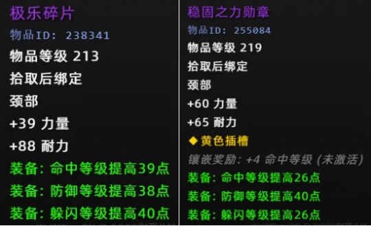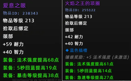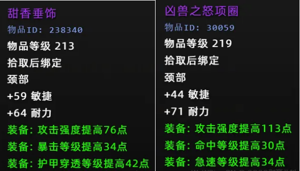 雷火真的听劝,又增加一条人性化改动! 相信大家在体验过怀旧服熊猫人之后,都会发出这样的感叹:“群体复活真乃神技”。不错,它给予了所有打本团队极大的便利。于是乎,就有玩家提议给时光服也整一个!话音刚落,官方就在今天发布蓝贴新增铭文物品“群体复活卷轴”,这意味着时光服玩家以后再也不用挨个复活了。 据蓝贴描述,玩家铭文专业达到390即可习得配方,制作材料需要10张神圣羊皮纸(铭文供应商购买)。另外,群体复活卷轴仅限四个职业使用,分别是:圣骑士、牧师、萨满和德鲁伊,但官方没有说明是否存在天赋限制,除了治疗以外,坦克、输出天赋是不是也能用?不管怎么说,如此良心改动以后可以多来点。 此外,最近时光服讨论比较多的莫过于“情人节”活动,从挖掘出来的数据来看,这次的掉落包括:五条紫色项链、310速度的情人节火箭以及大量玩具。值得注意的是,项链从原本206提升至213装等,强烈建议还没购买项链的玩家多等几日,因为情人节活动即将于2月9日开启。 那么问题来了,情人节项链与P2团本掉落的究竟哪个好?下面咱们先做一个属性对比。 一、敏捷系 情人节项链对于破甲职业需求更高一些,比如猎人,如果你拥有4+4的情况下,应该是不缺命中,使用左边的话不会浪费一点属性。 二、力量系 力量系的项链就不如团本掉落,低力高耐的属性不推荐使用,当然,如果你是刚起的号用来过渡一下还是挺不错的。 三、治疗系 治疗项链分别有两套,一套带“回五”,一套是“精神”。首先说说“回五”,咱们拿它与MC火焰之王的项圈作比较,左边的属性高些,但少个孔,总体两者差不多,取决于你喜欢急速还是暴击。 然后是精神向的,没想到,213主属性竟然比219的还要高,法强一样,急速仅少了4点,说实话,整体不输219装等。 四、防御系 纵观魔兽史上的情节人活动,防御项链一般都比团本的好,就拿MC掉落的219稳固之力勋章做对比,虽然少一个孔,但其它属性不输219装等,最关键的是左边的耐力高出23点,性价比拉满。 不得不说,这次时光服情人节活动挺良心的,直接把装等提高至213,对于小号来说无疑是巨大福利。 [编辑:月光下完美]