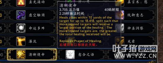 10层之后出现一个buff,释放下一个指定治疗(非智能治疗)就会对目标释放一个愈合祷言。如果目标身上有你的愈合祷言,那么这个愈合祷言会覆盖原来那个。