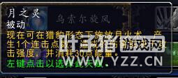 月之灵:可以再猎豹形态下施放月火术,产生1点连击点数,造成的伤害取决于攻击强度,并消耗30能量。