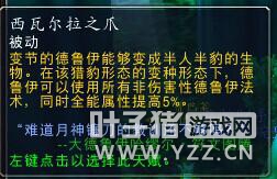 西瓦尔拉之爪:被动 变节的德鲁伊能够变成半人半豹的生物。在该猎豹形态的变种形态下,德鲁伊可以使用所有非伤害性德鲁伊法术,同时全能属性提高5%。 四、6.0野性天赋新增实用雕文 1.九命猎豹