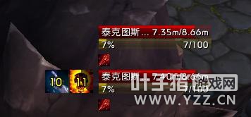 二、多目标输出偏向多线的环境通常选择黑暗涌动天赋(典型环境:悬槌堡泰克图斯、布兰肯斯波、独眼魔双子)。鉴于多目标环境比较复杂,我会在后文根据每场战斗的具体情况进行分析。这里我只谈一些具有共性的东西: 黑暗涌动天赋多目标输出的基本思想是确保一个单位可以享受透彻之力加成(在目标数量并不多的战斗中该目标为需要集火的主目标,例如真菌食肉者),不论是否带有黑暗涌动buff的尖刺以及斩杀期的灭均以该单位为目标,其他目标尽量保持双dot(斩杀期遵循灭,心爆>DOT的优先级原则),卡CD释放心爆,瘟疫的释放较为随意,在不会导致暗影宝珠溢出时可以刻意压后以配合戒指buff。 除此之外,还有一点需要强调的是,在透彻之力天赋下,dot对比透彻加成下尖刺的提升相当有限,所以请确保你的每一轮dot可以造成完整(至少是绝大部分)的伤害,若是dot目标过早死亡则会导致相当程度的dps亏损。 同样地,合理的插件也可以辅助你的多目标输出。 Tidyplates可以在单位的姓名版上展示你的dot剩余时间,而ShadowedUF的首领模块则更加直观的显示了首领战中的所有主要目标的dot栏位,这两个插件对于合理地刷新dot均有一定帮助。 Tidyplates效果如下: